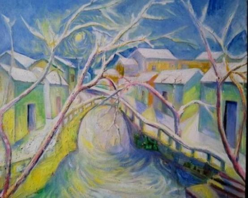 达成专业方可论其他。真正的画家李马林在画坛能依专业成“美术”。以术致美,这种艺术追求虽然很朴素,却让李马林走入主流画家的阵列,让他的画不以陋技浅丑而视人,必以深刻大美而动人。风景画和人物画是他用专业技法攻达而立大旗的重要体裁画。风景画面主意表达自然生机,所以风景画在施彩上就主施黄绿,辅以红绛蓝,风光有色彩,景致有生命。